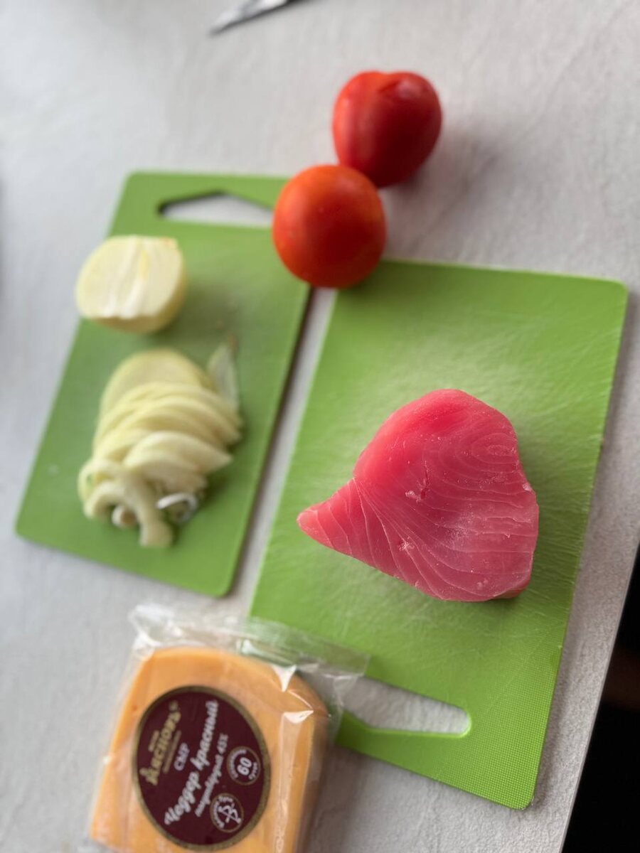 Тунец или форель дополняют сыр, что делает вкус менее сырой и более насыщенной. Этот простой трюк с запеканием сохраняет сочность рыбы и раскрывает её в сочетании с овощами, а хлеб становится хрустящей основой для каждого укуса.