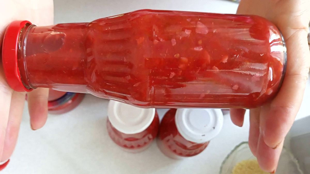 Объём готового соуса составляет чуть больше 2 литров. Убедитесь, что под рукой есть большая кастрюля, а также банки для хранения.