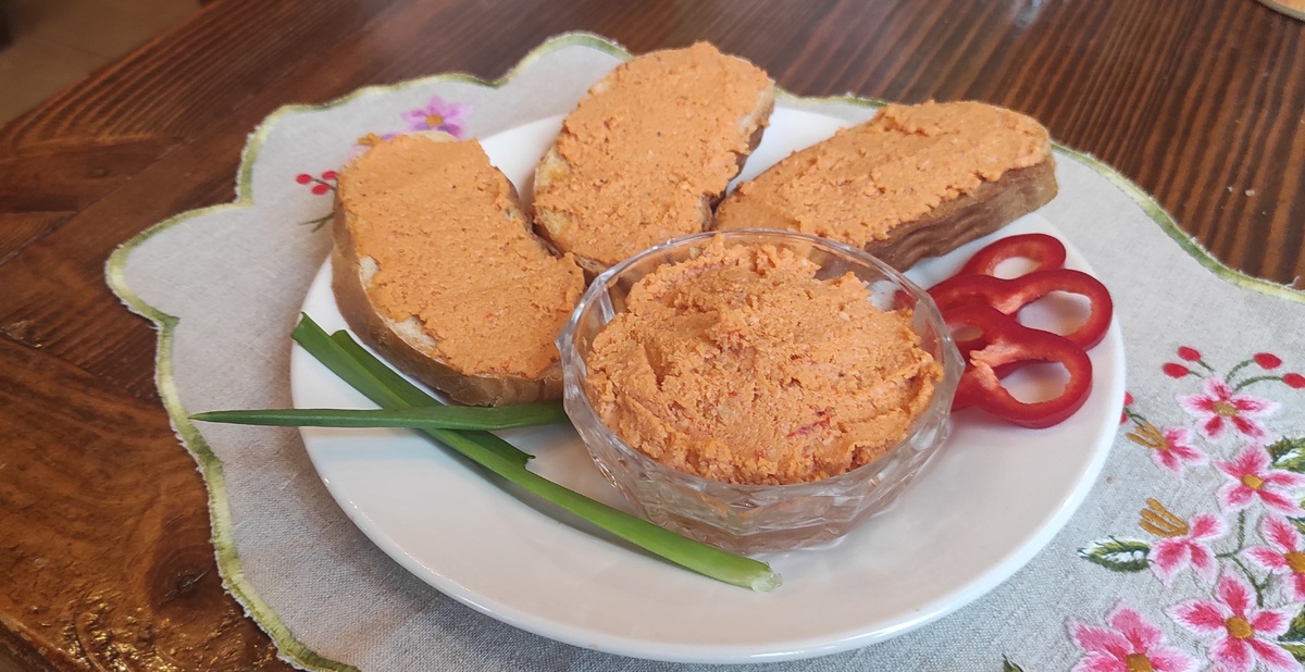 Этот куриный паштет, окрашенный в яркий рыжий цвет, способен поднять настроение даже в самые пасмурные дни. Вкус нежного филе курицы гармонично сочетается с ореховыми нотами кунжута и сладостью болгарского перца, создавая воспоминания о теплом лете и солнечных днях.