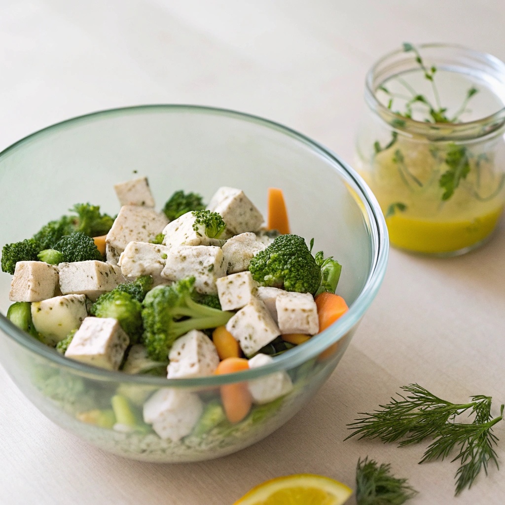 Паровой тофу с брокколи и морковью