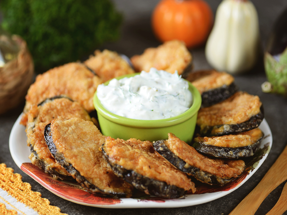 Жарьте на сковороде с предварительно разогретым растительным маслом. Сначала выкладывайте баклажаны фаршем вниз и жарьте около пяти минут на среднем огне, затем переверните и готовьте ещё 2–3 минуты. Готовые баклажаны лучше отложить на бумажное полотенце, чтобы впитался лишний жир. Подавайте блюдо горячим — оно прекрасно сочетается с гарниром, но также вкусно и без него.