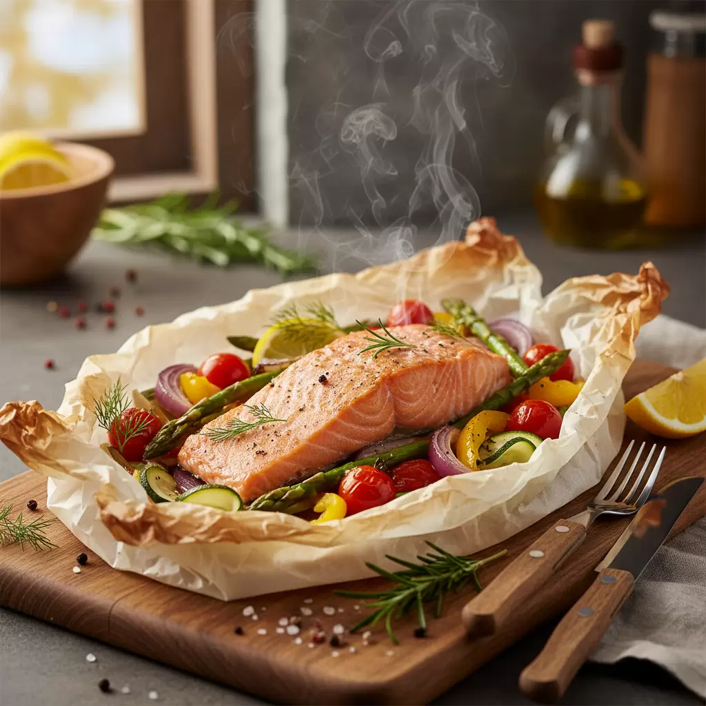 Папильот — это кулинарный метод, который позволяет запекать рыбу и другие продукты в герметично закрытом конверте из пергамента либо фольги. Такой способ готовки позволяет ингредиентам томиться в собственном соку, когда вся ароматика и вкус остаются внутри, создавая поистине незабываемое блюдо.