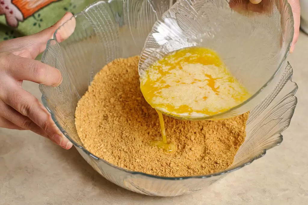 Сначала нужно смолоть печенье до состояния крошки. Размягченное сливочное масло смешивается с полученной крошкой и помещается в креманку или бокал. Эту основу ставим в холодильник для охлаждения.