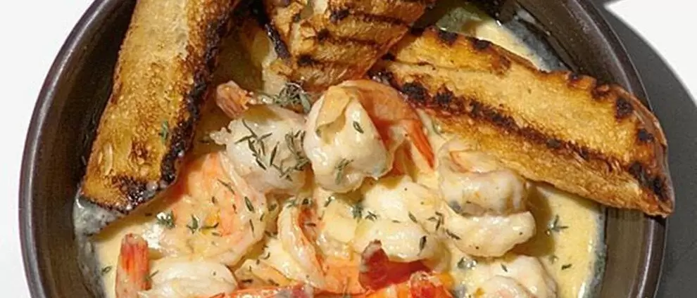- Креветки обжариваются с имбирем, чесноком и специями, а затем тушатся в сливочном соусе.