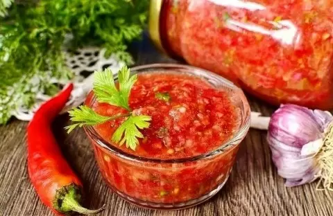 Эта аджика отлично подходит к различным блюдам: жареной картошке, шашлыкам, мясным горячим блюдам и даже в качестве дополнения к бутербродам. Она порадует ваших гостей и станет изюминкой каждого застолья!
