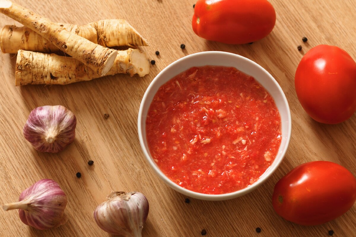 Этот рецепт приготовления помидоров с чесноком и хреном на зиму очень прост и не требует много времени. Эти помидоры полезны благодаря процессу брожения, в результате которого образуются лактобактерии, способствующие здоровью кишечника.