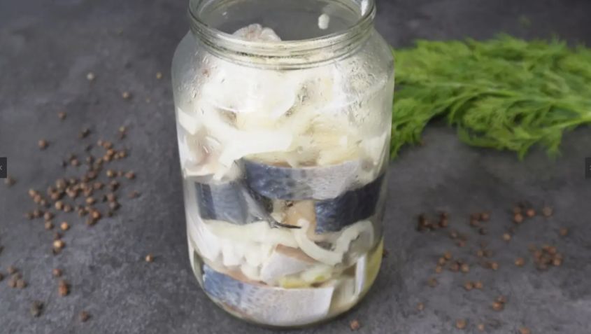 6. Обсушите рыбу и, при желании, добавьте нарезанный лук. Переложите в чистую банку, полейте растительным маслом и закройте. Можно оставить в холодильнике на несколько часов для более насыщенного вкуса.