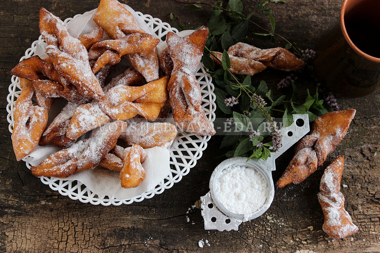 Совет: чтобы достичь идеальной хрустящей корки и красивой формы, в тесто добавляется водка. Спирт не позволяет клейковине расплодиться, а после жарки все алкогольные компоненты испаряются, что делает хворост абсолютно безопасным для детей.