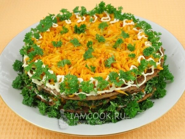 - Слоёный салат с куриной печенью