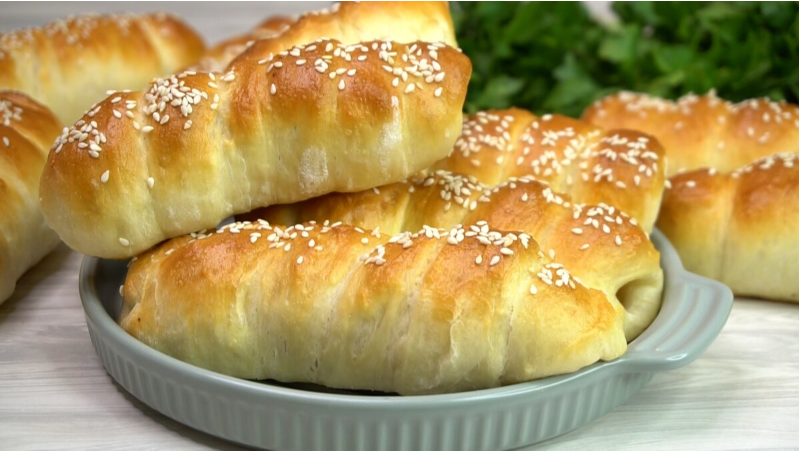 В итоге получится около 16 штук. Положите их на противень, смажьте желтком и, при желании, посыпьте кунжутом. Выпекайте в заранее разогретой духовке при 180 градусах в течение 20-25 минут, следя за готовностью.