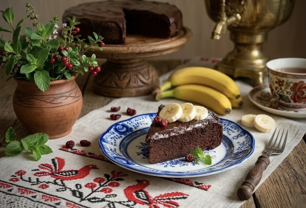 - Уникальная текстура благодаря бананам: мягкость и легкая влажность придают брауни характерный шарм.