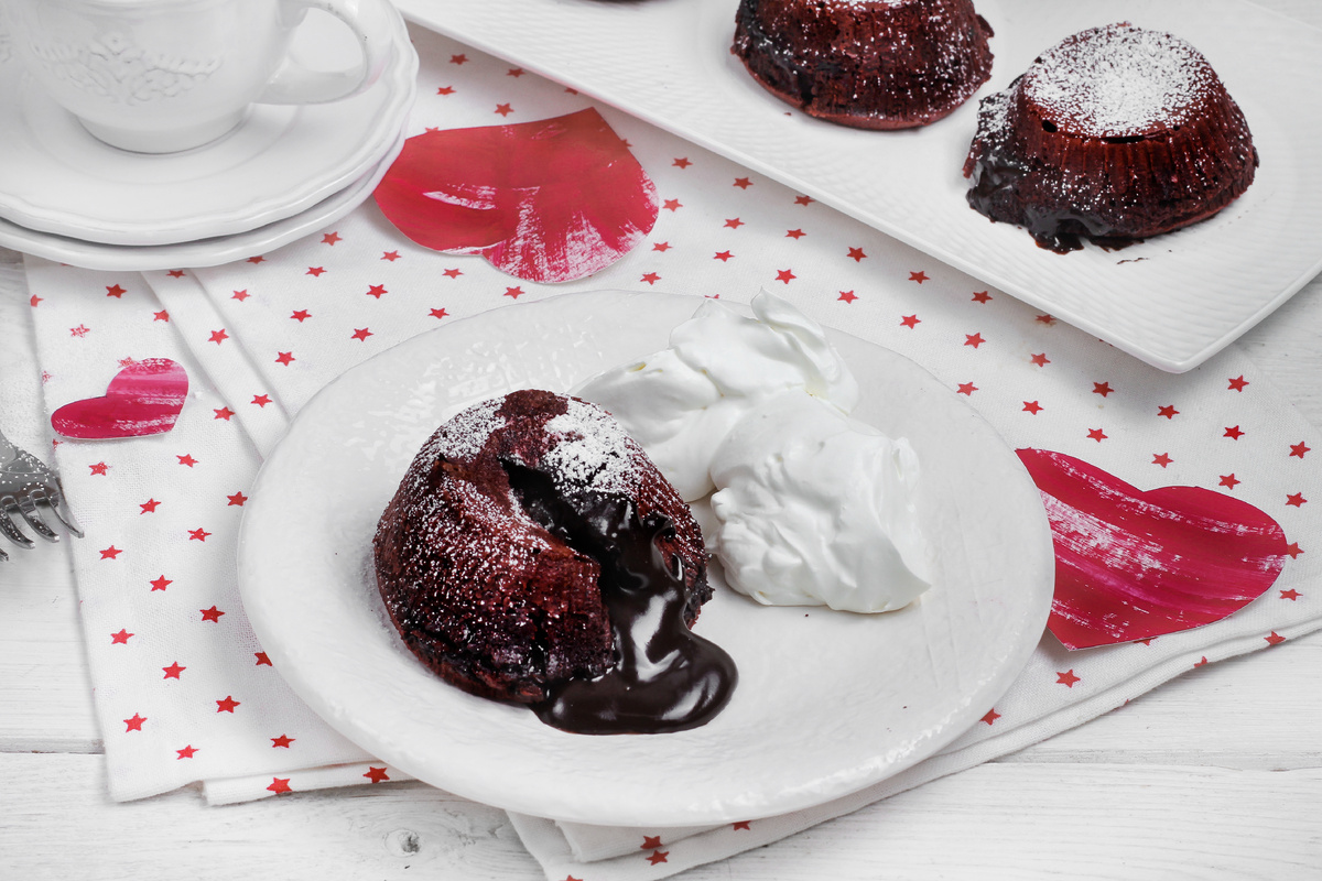 Шаг 6: Подавайте фондан горячим, с взбитыми сливками, пока шоколад еще не застыл внутри.
