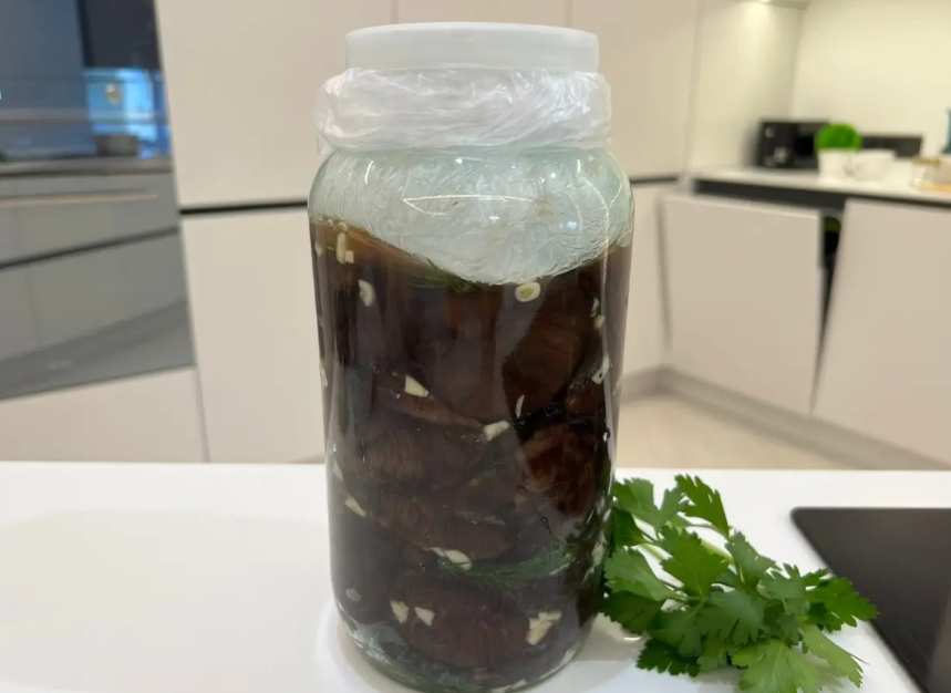 - Грибы: Убедитесь, что грибы полностью покрыты маринадом. Подходящий вариант — переложить их в стеклянную емкость и залить растительным маслом.