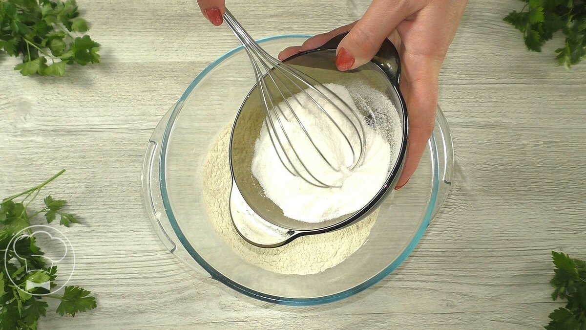 Для начала необходимо соединить муку с разрыхлителем, солью и сахаром. Рекомендуется заранее измельчить сахар в кофемолке для достижения более однородной текстуры.