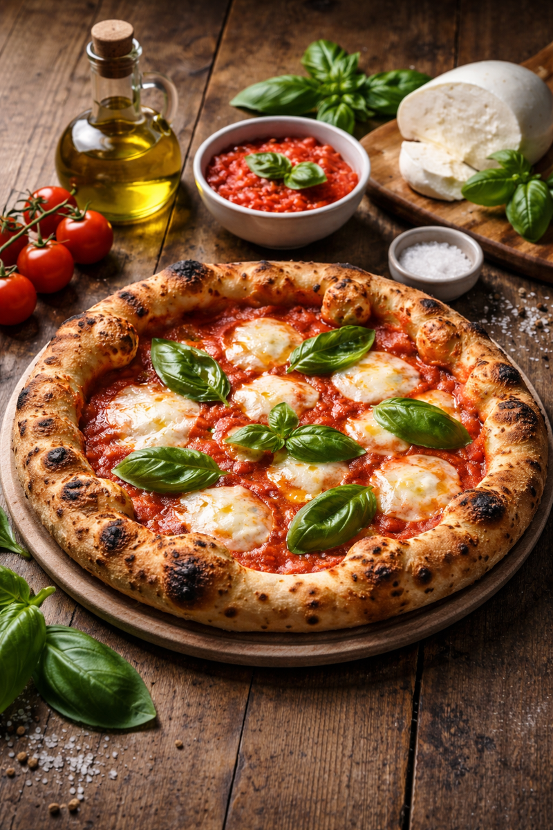 Главное отличие неаполитанской пиццы — это её безупречная простота. Здесь не существует излишков: всего несколько качественных ингредиентов, и каждый элемент подчеркивает вкус другого. Как правило, это: