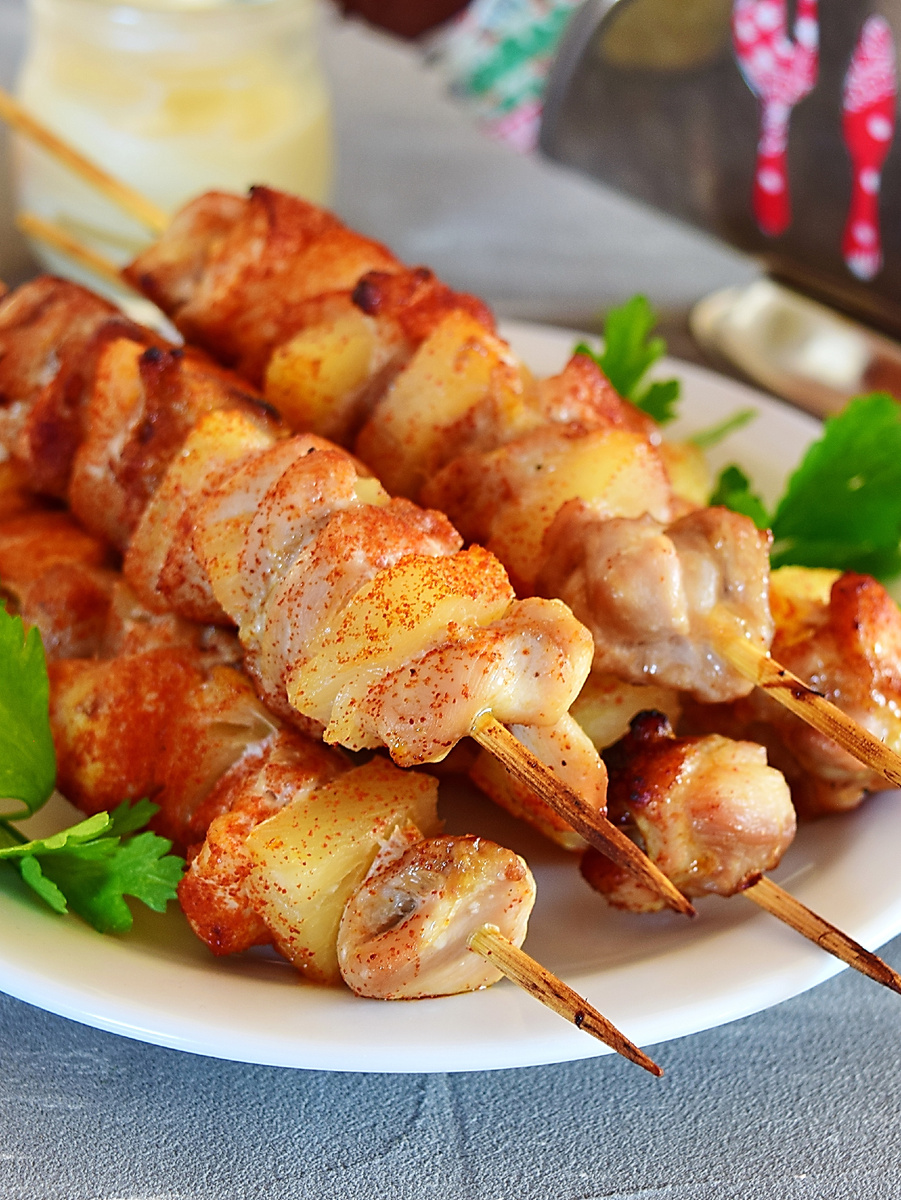 Готовые шашлыки получатся сочными, с румяной корочкой, а ананас добавит вкусной сладости. Подавайте с любимым соусом и свежим салатом. Улыбайтесь, когда кто-то спросит: «Где взяли мангал?»