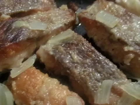 - Разделка на порции. Горбушу следует нарезать на кусочки удобного размера, чтобы они быстро прожарились и были удобны в подаче.