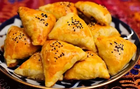 - Мясная самса: классический вариант с начинкой из баранины, лука и жира – настоящий символ улиц Ташкента и Самарканда.