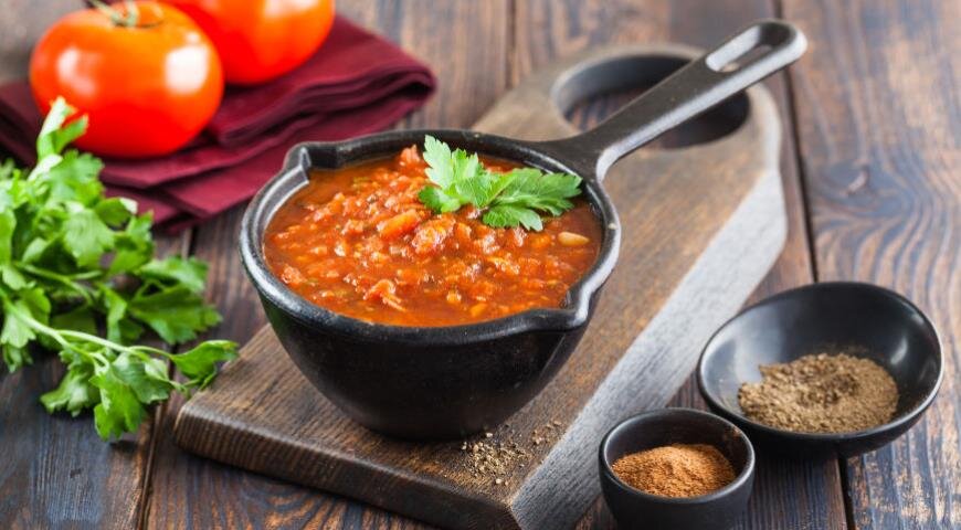 - Выберите качественные помидоры – свежие или консервированные, но без лишних добавок.