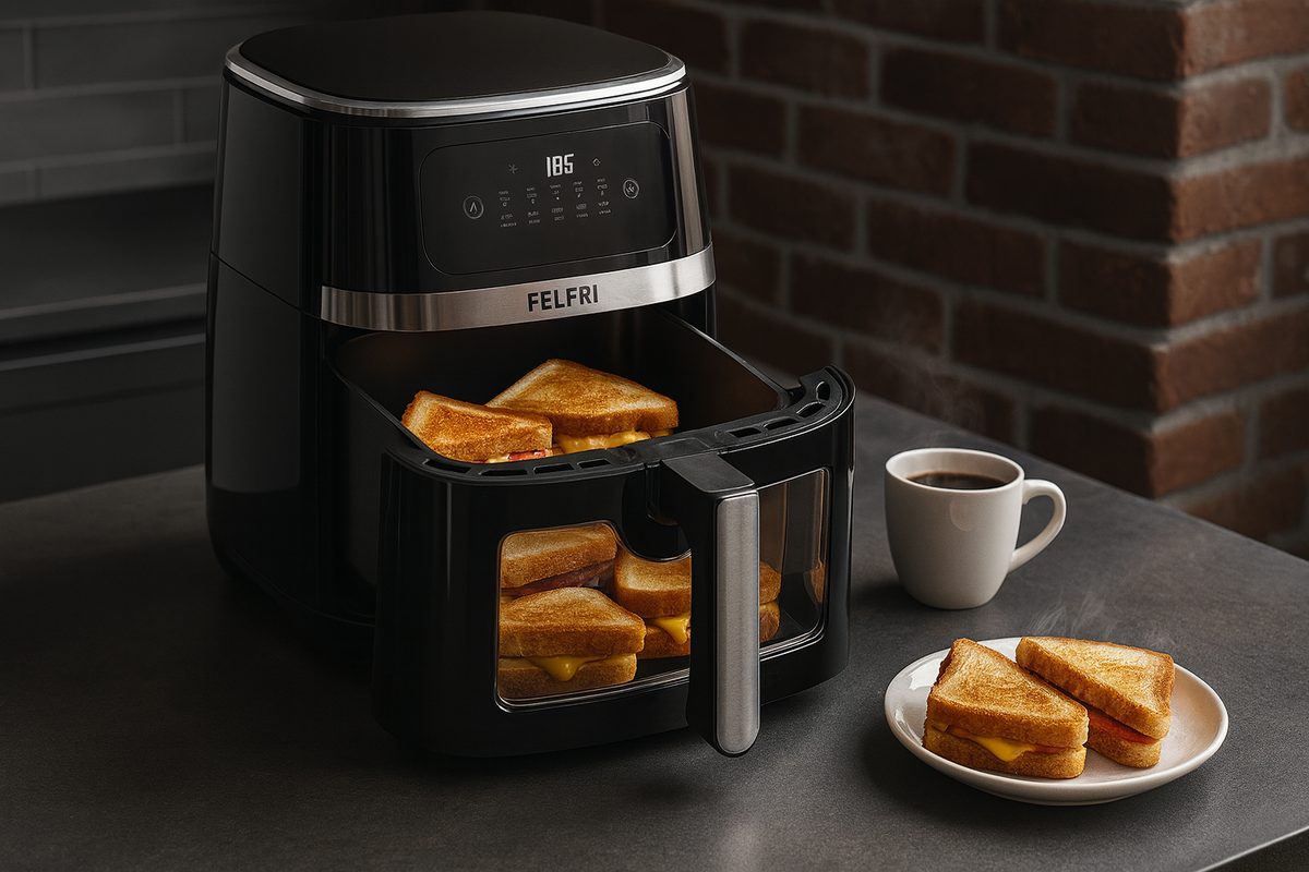 С двухтэновым аэрогрилем готовый перекус выходит быстро и равномерно, корочка получается хрустящей, а сыр держит тягучую текстуру. Это простое решение для завтраков и ужинов, которое можно повторять каждый день без лишних усилий.