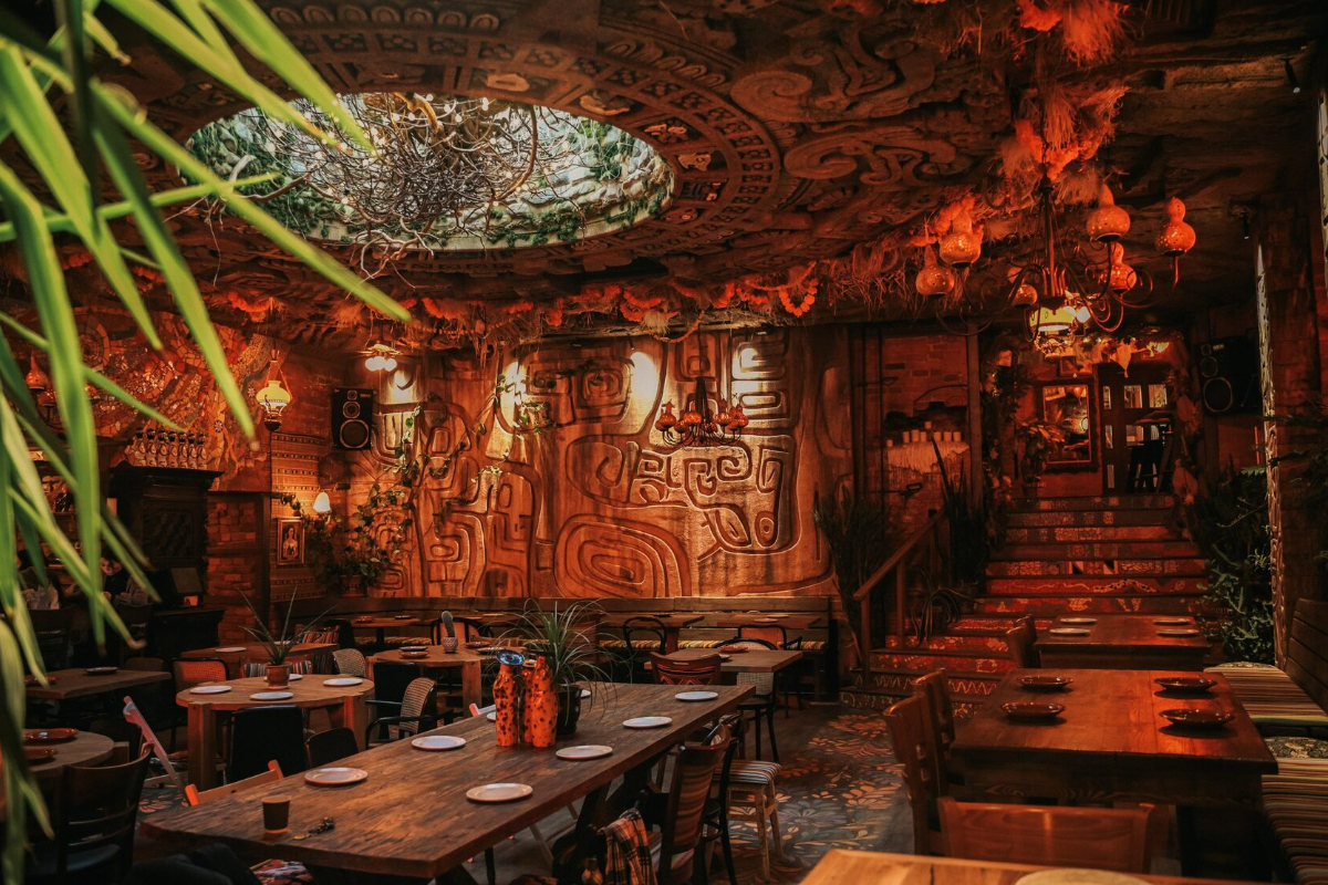 С первых шагов в Arrurru посетителей встречает захватывающий дизайн, который словно переносит их в сердце Латинской Америки. Здесь можно увидеть тщательно продуманные детали, включая свечи и загадочные атрибуты, создающие настоящую сказочную атмосферу. Каждая деталь интерьера проработана до мелочей, что делает его идеальным местом для знакомства с мексиканской кухней и культурой.