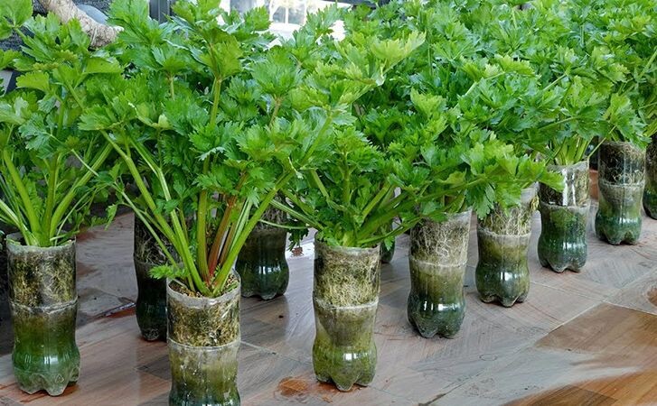 Приготовьте пластиковые бутылки, которые станут домом для вашего сельдерея.